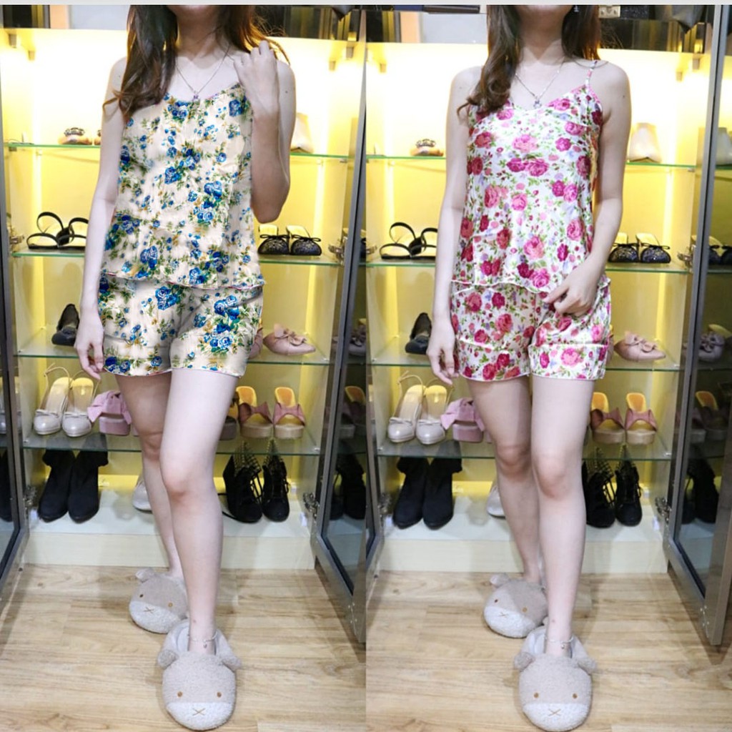 Stelan Baju Tidur Satin Motif Tali Pendek Corak Bunga Shopee Indonesia