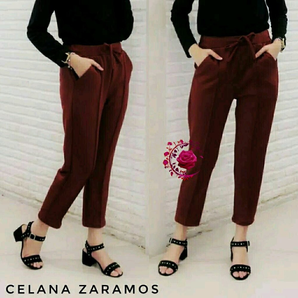 Celana Panjang Wanita Merah Maroon Baggy Pants Pant Zaramos Dncij Deneicollection Shopee Indonesia