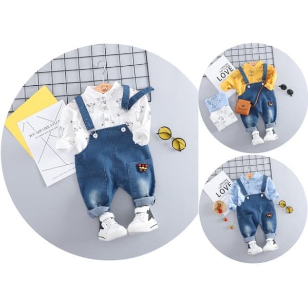 Jumpsuit Jeans Anak Laki Laki Celana Kodok Anak Setelan Kemeja Kartun 1 2 Tahun Shopee Indonesia